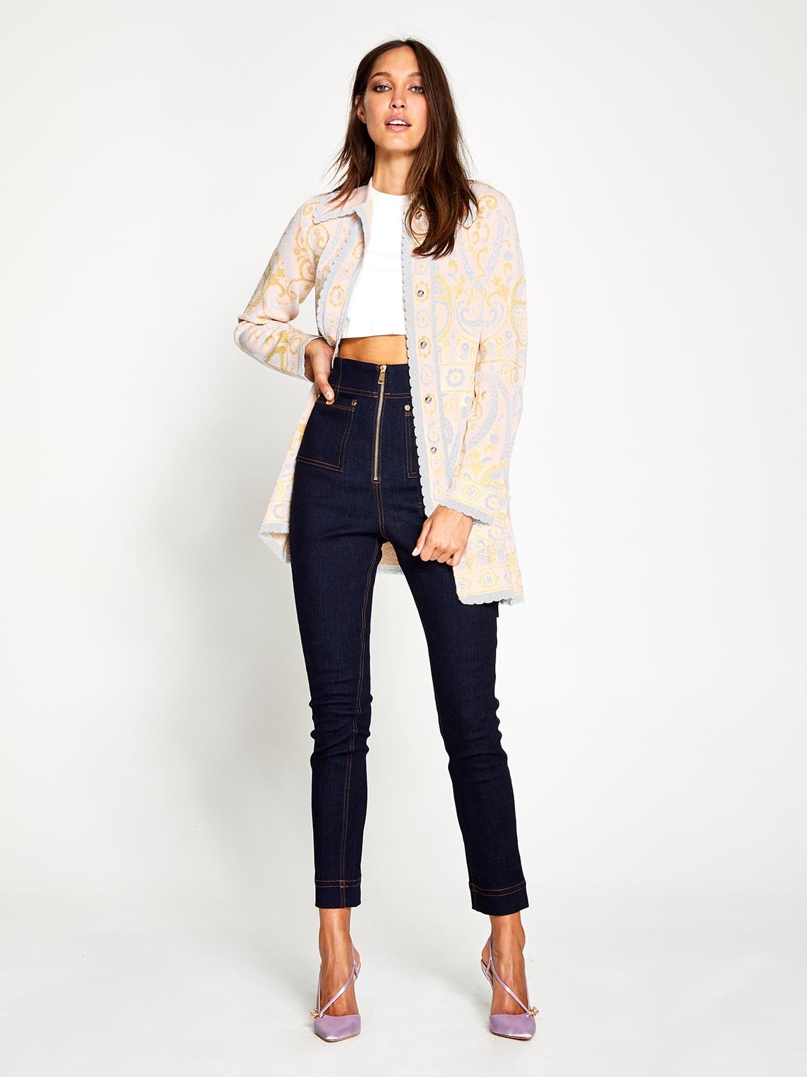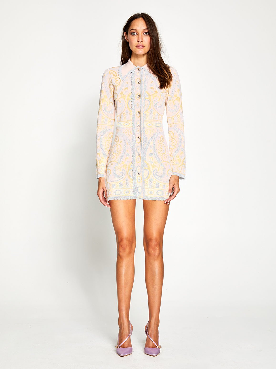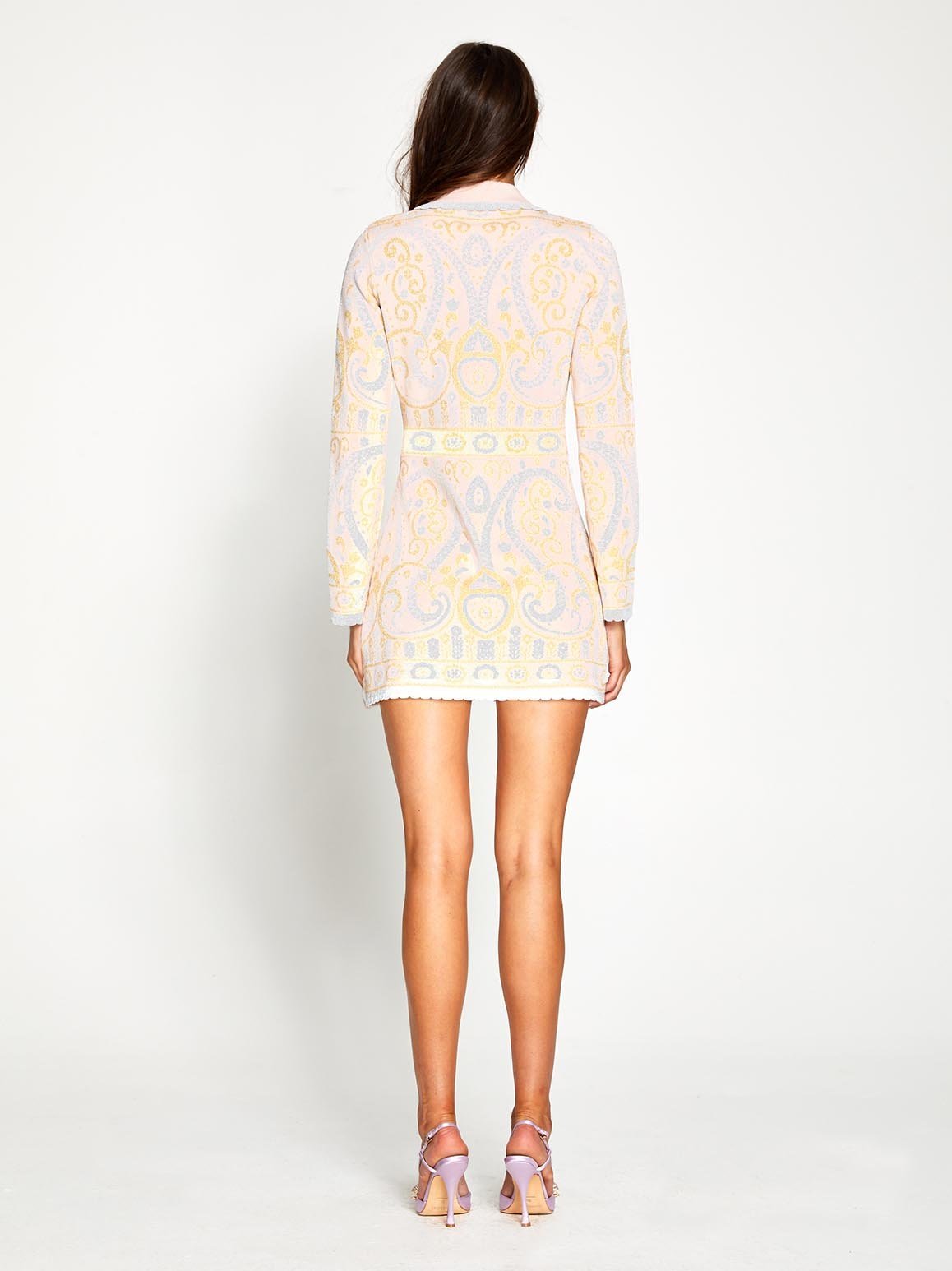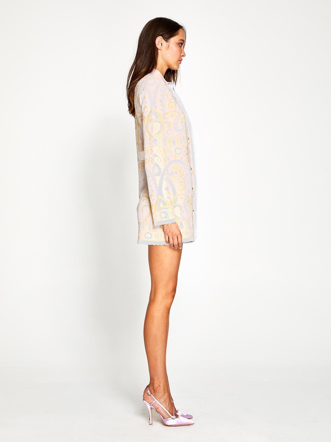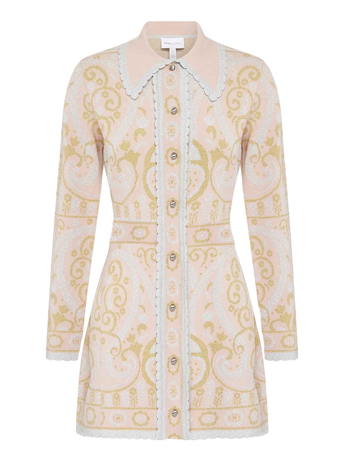 The Adore Jacket has been designed to create a striking statement that accentuates your figure, even in the upcoming cooler months. The vintage inspired collar is finished with delicate scalloped trims and the romantic garden pattern has metallic finishes. This versatile design is lined with buttons and can be worn as a mini dress if desired.