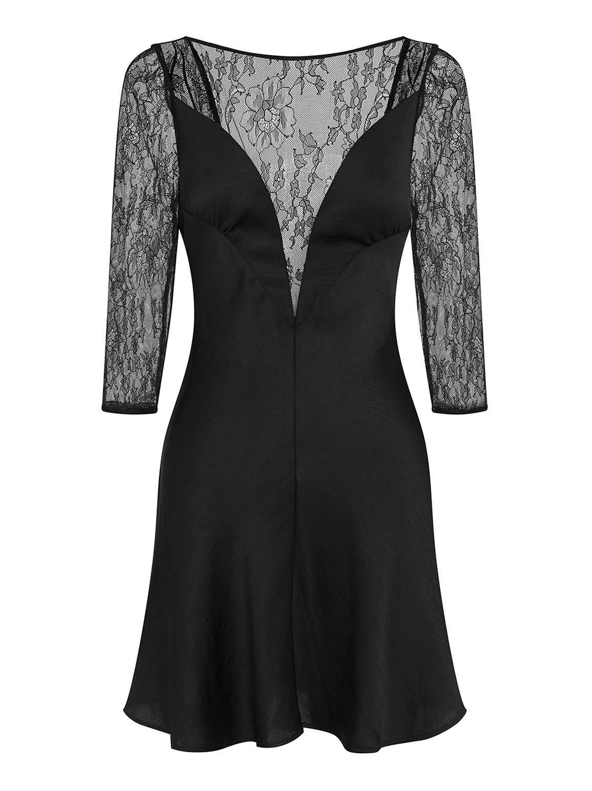 Add a seductive LBD to your wardrobe with the Black Beauty Mini Dress. This silhouette clings to your figure in all the right places and is even more flattering from behind with the open back. This delicate dress uses lace panelling along the decolletage and sleeves which calls for your hair to be swept up and back.