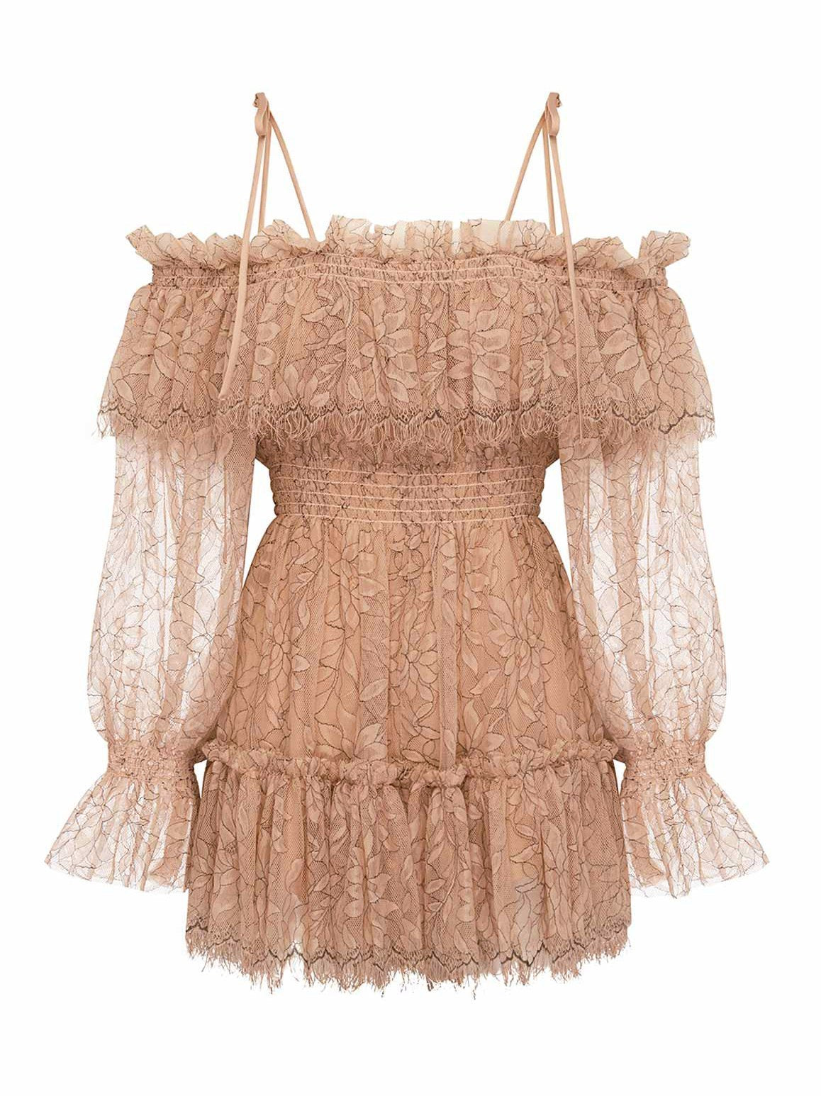 The Calypso Playsuit is a best selling silhouette and stands out with its decorated ruffles at the neckline and hem. It has been cut from a lustrous lotus lace and suspends from adjustable spaghetti straps. Team yours with some strappy heels and a smokey eye.