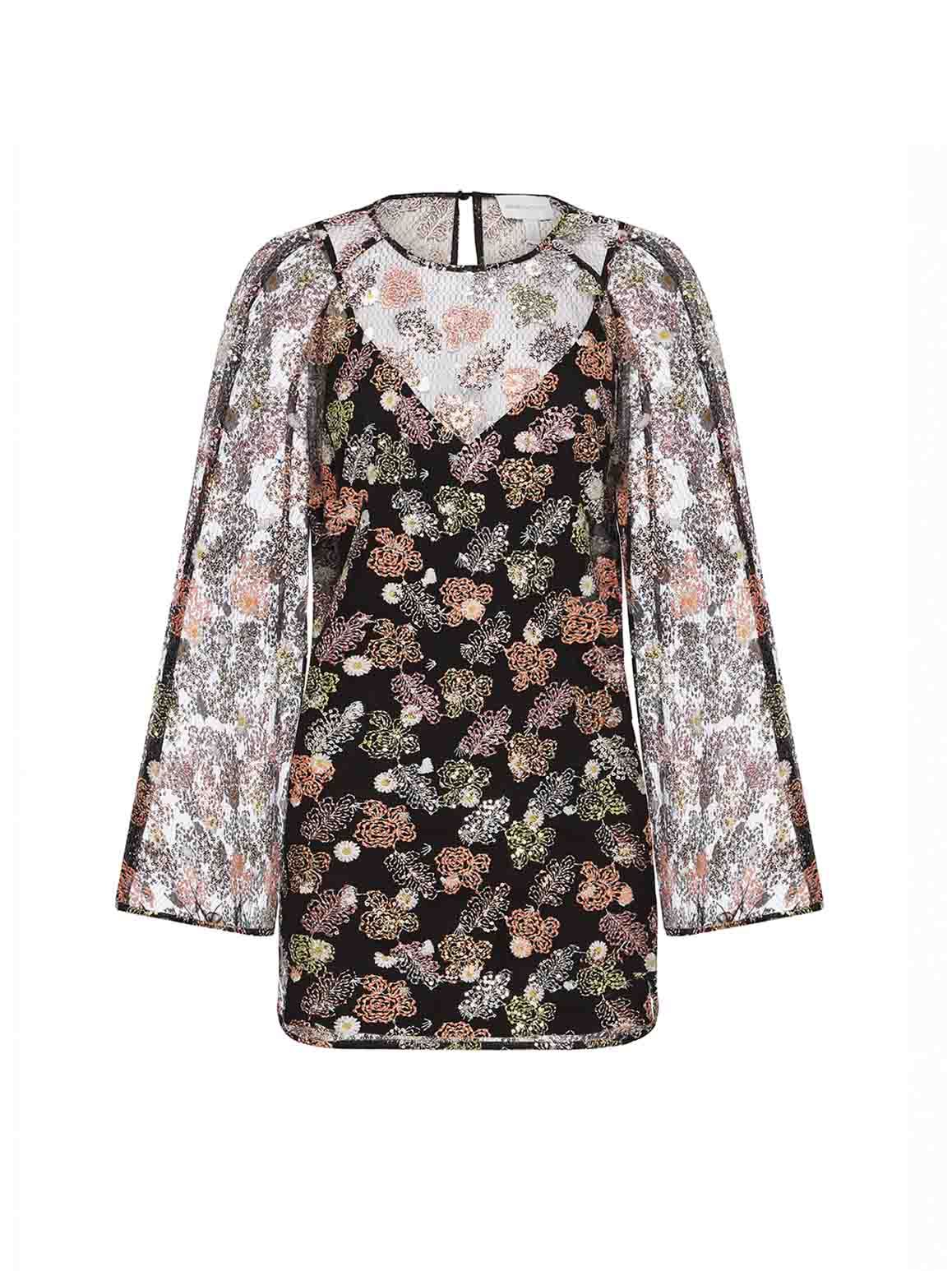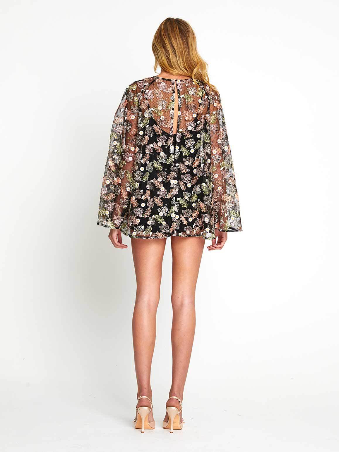 If you're looking for a toned back version of the Celestial Swing Dress, this ultra mini dress is just for you. The floral sequins featuring top to bottom compliment the 70's swing dress silhouette. Emphasise this leg baring design and pair the Celestial Dress with your highest heels.
