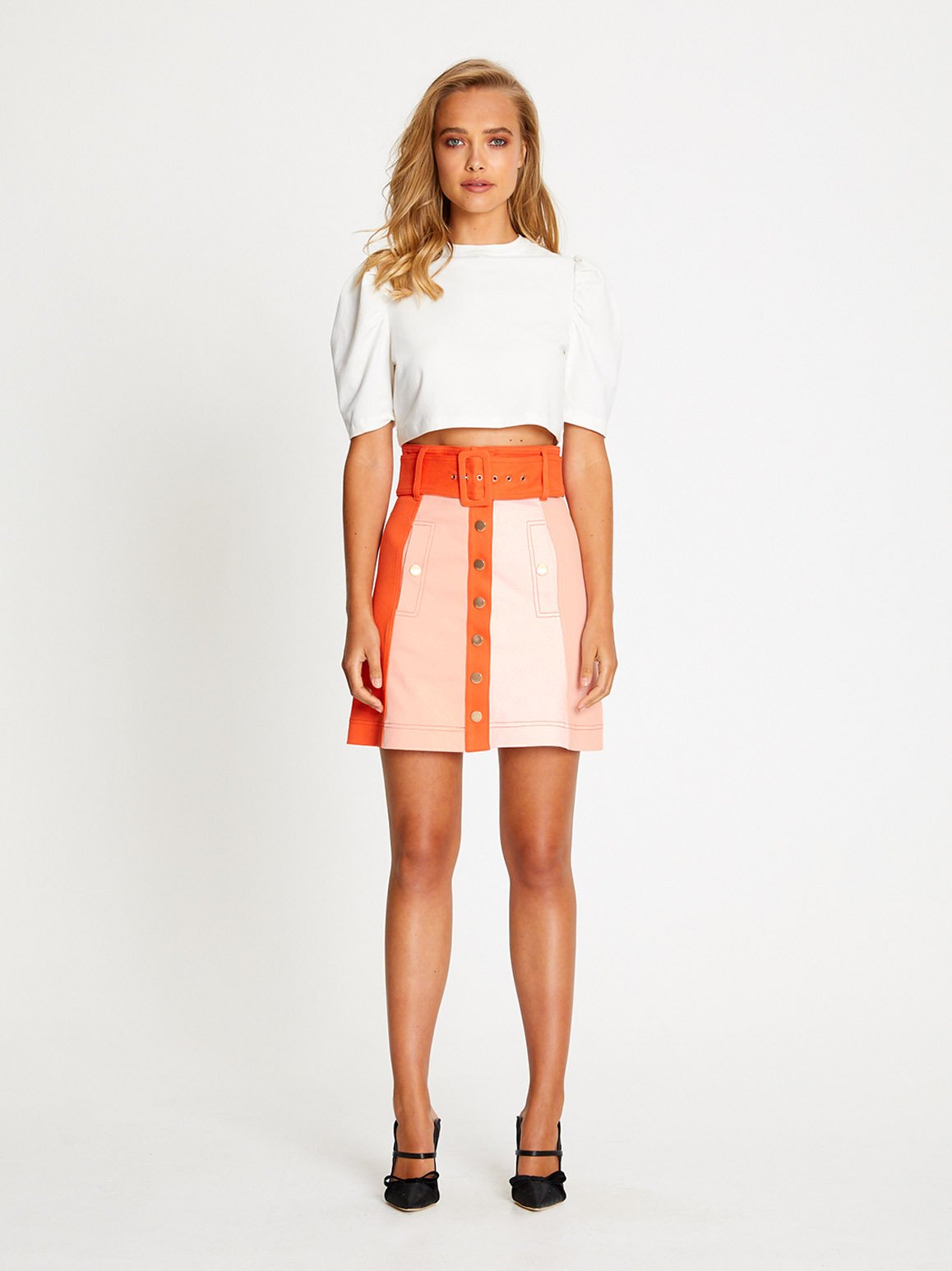 The Chelsea Hotel Skirt is a 70's vintage inspired denim skirt that can be easily paired with your favourite white top. The oversized belt emphasises the small of your waist and the modest length will suit all shapes and sizes.