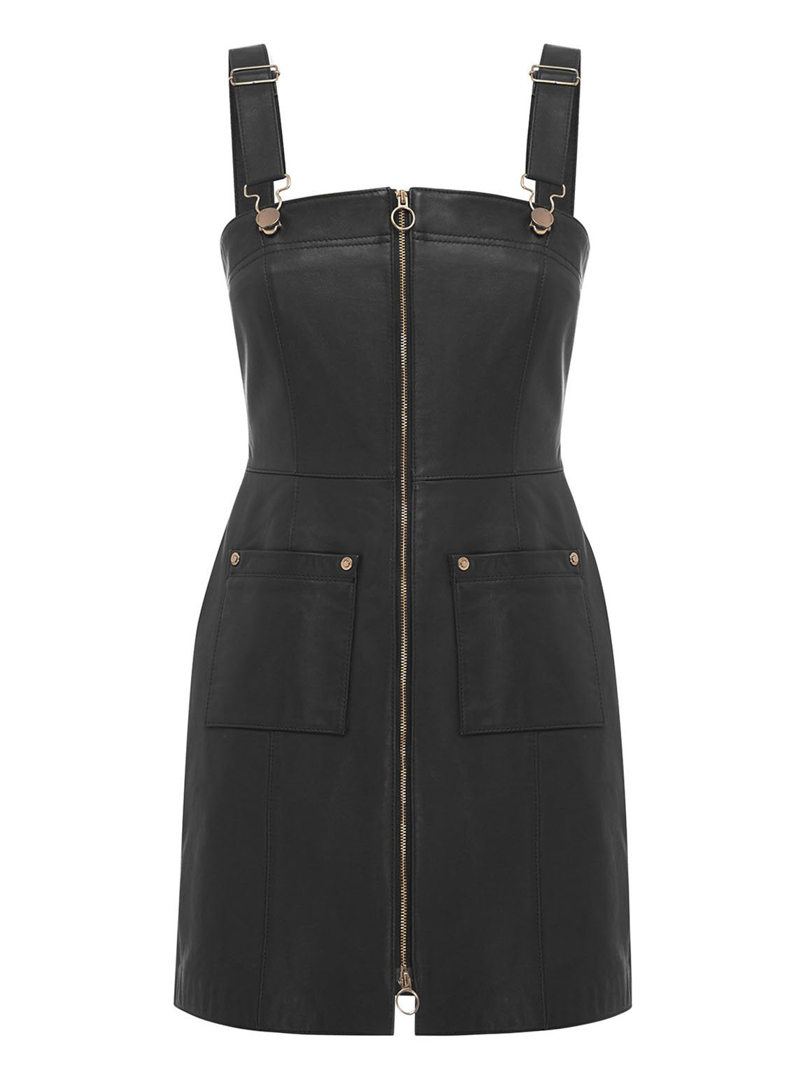 Add a tougher touch to your wardrobe with our Cherry On Baby Mini Dress. Cut from a butter-soft leather, this mini dress features gold hardware detailing with a front zip, buttoned pockets and buckle straps. Have fun with the styling, it looks just as good with a feminine blouse underneath or on its own with some sky high heels.