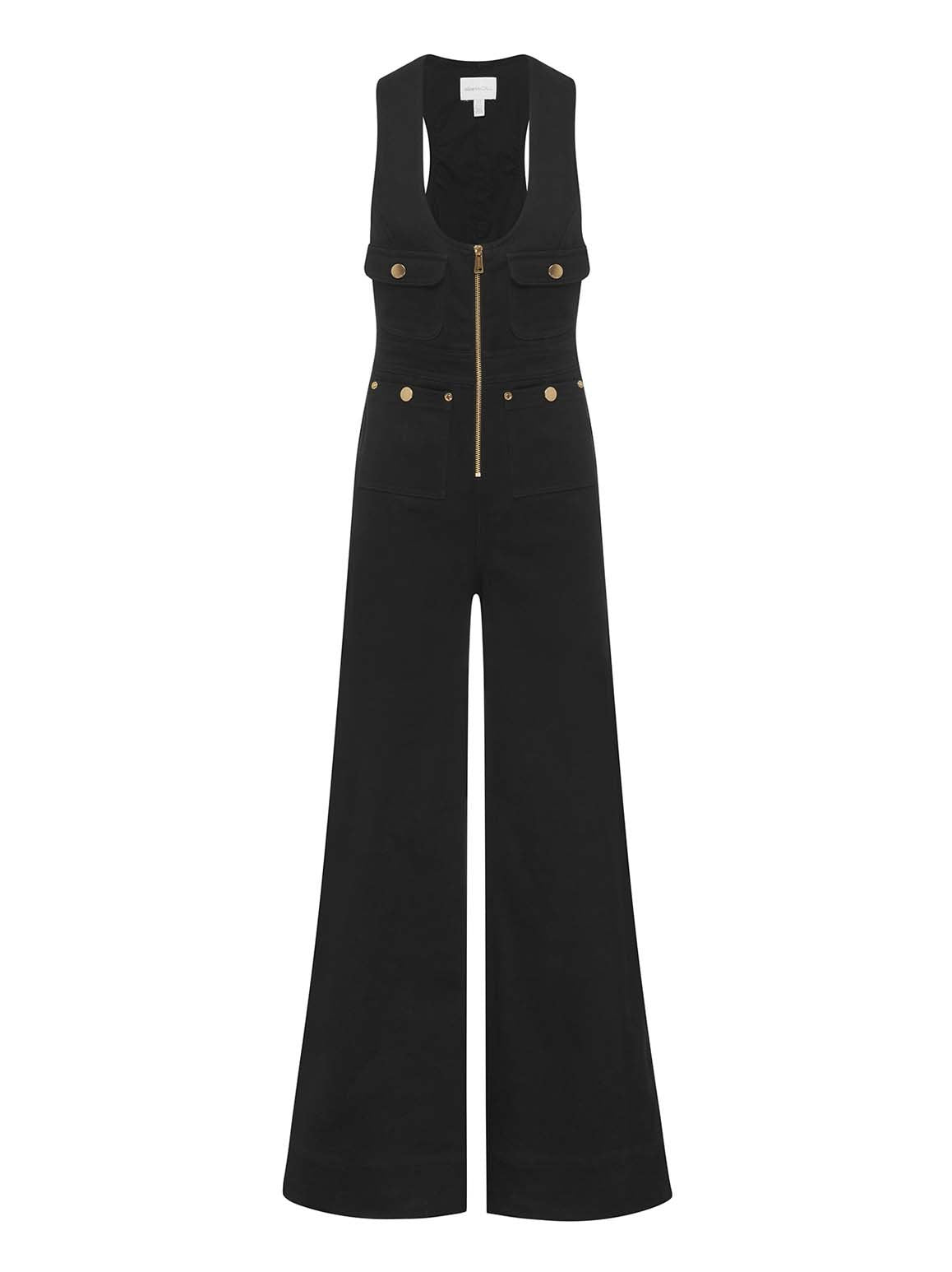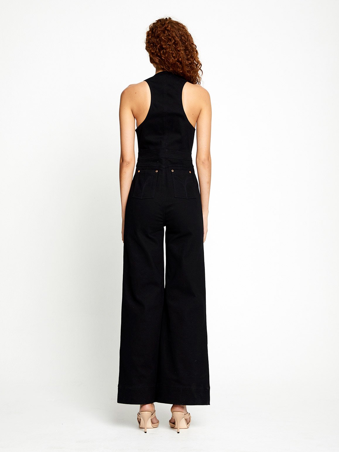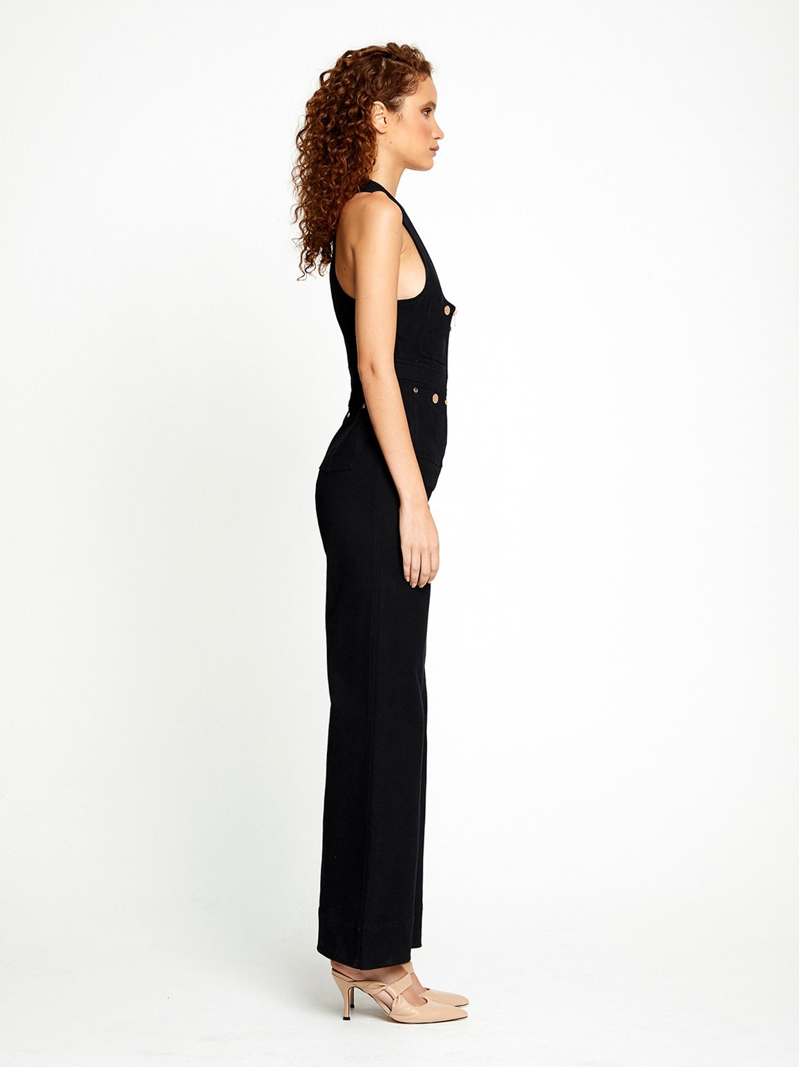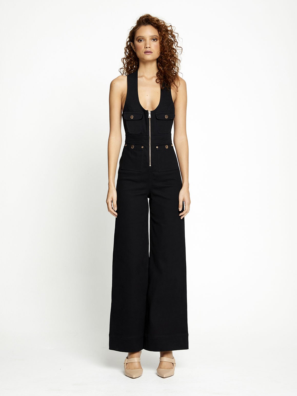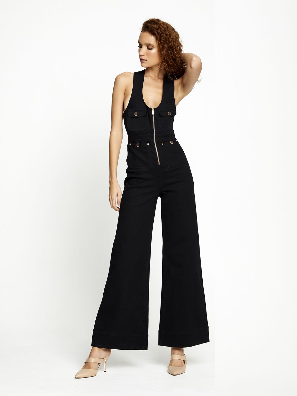The Club Noir Jumpsuit is an effortless silhouette that can be worn alone or over a basic tee. The wide leg pants elongate your legs and the pocket placement shows off your waistline.