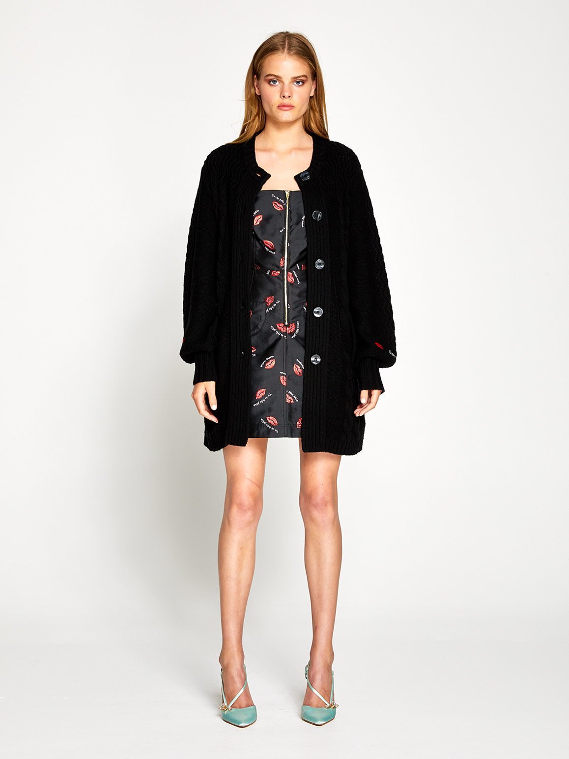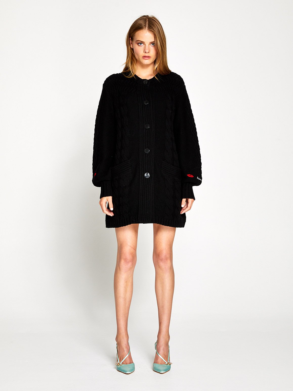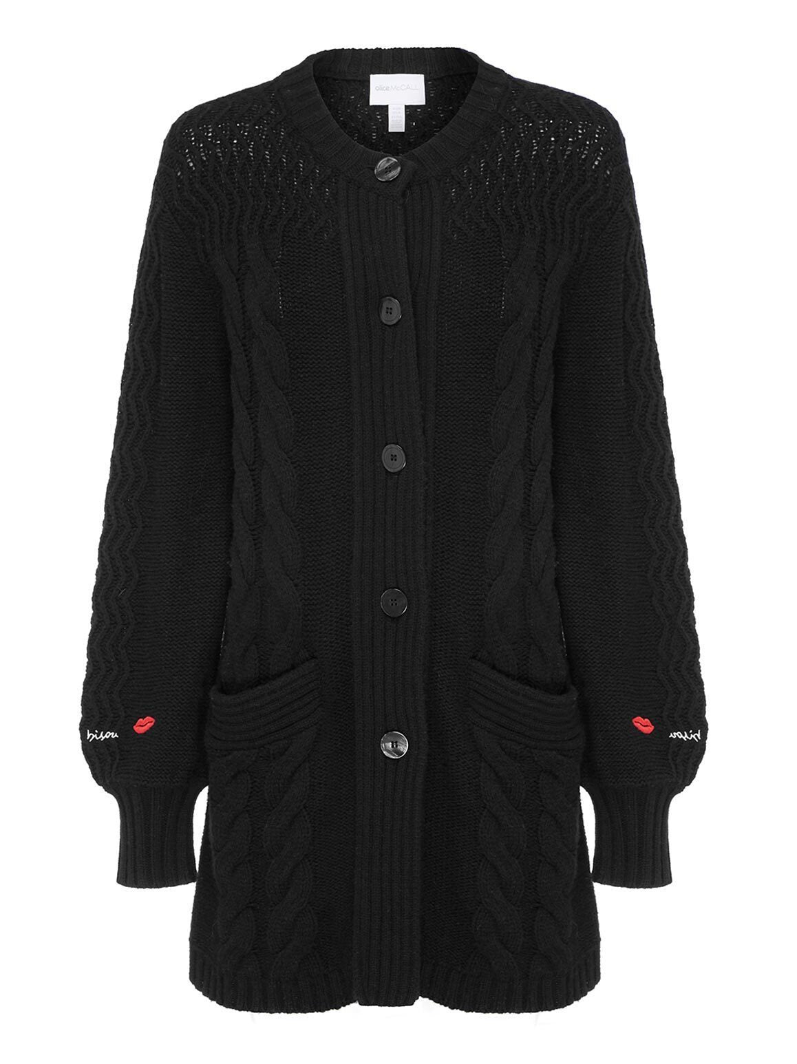 Woven from a cable knit, the Constance Cardigan is a classic staple for your winter wardrobe. The playful french embroidery on the sleeves is the sweetest touch to the otherwise neautral palette. Complete with 2 front pockets, the cardigan is fastened with oversised buttons down the centre front.