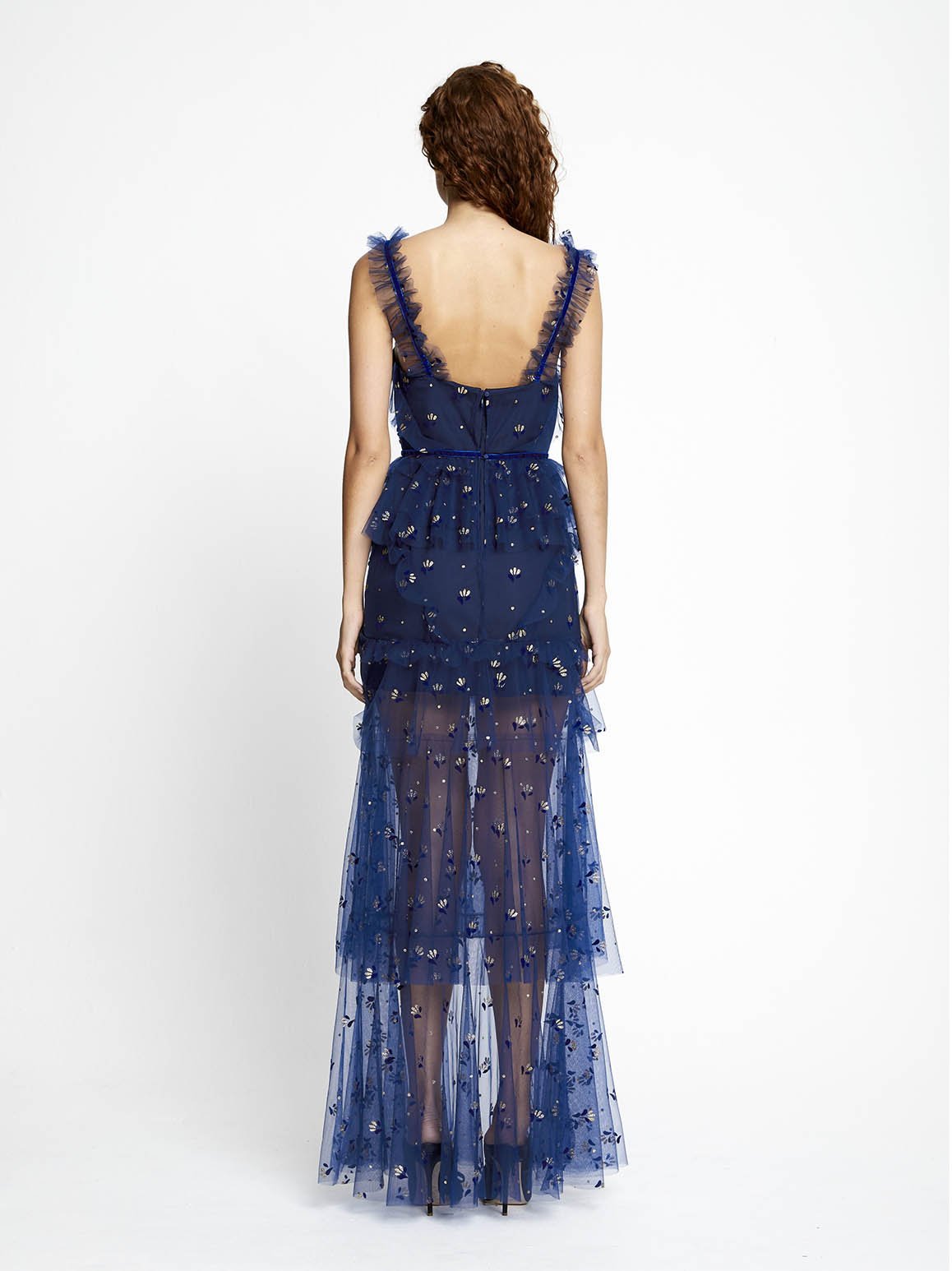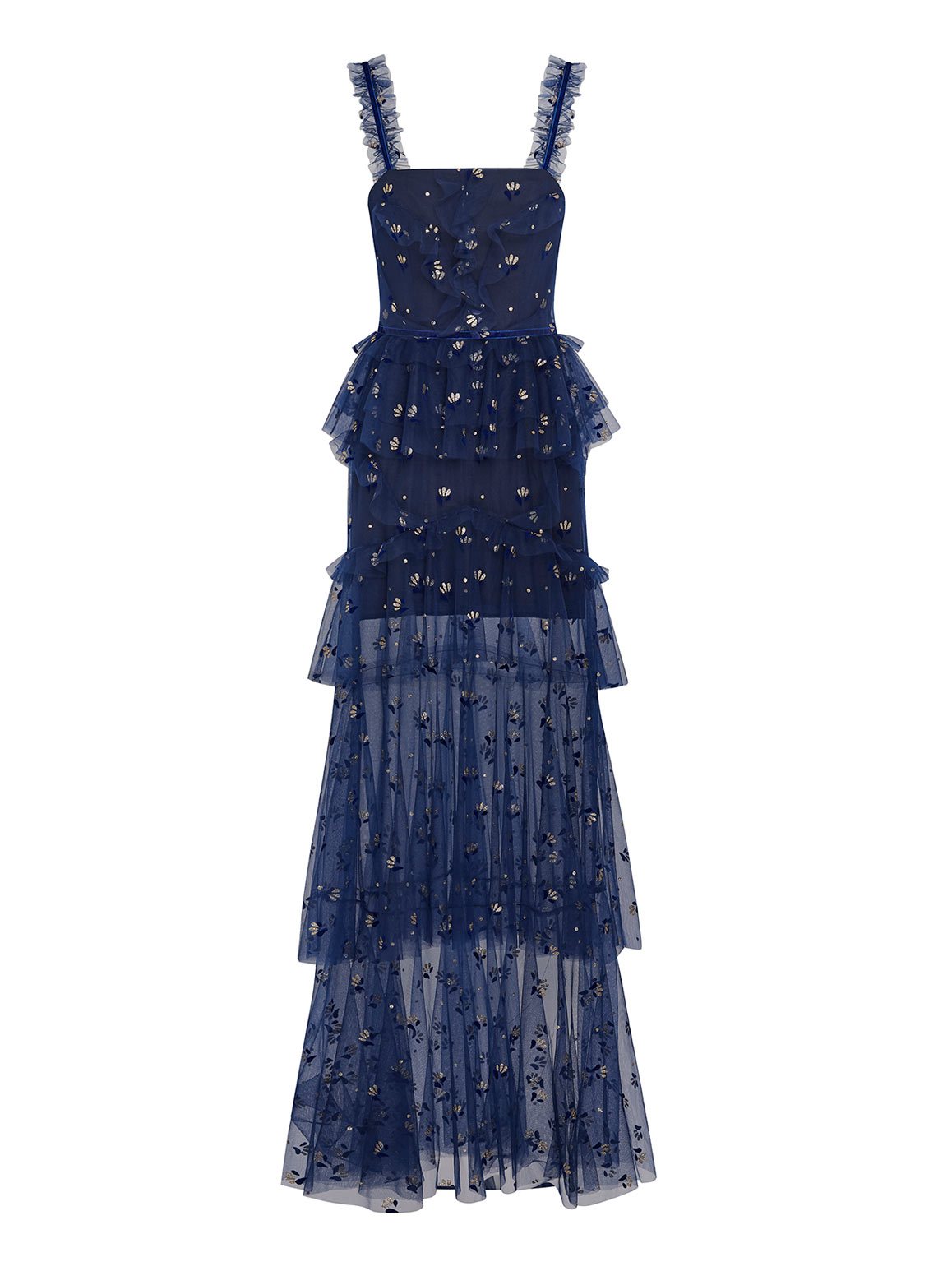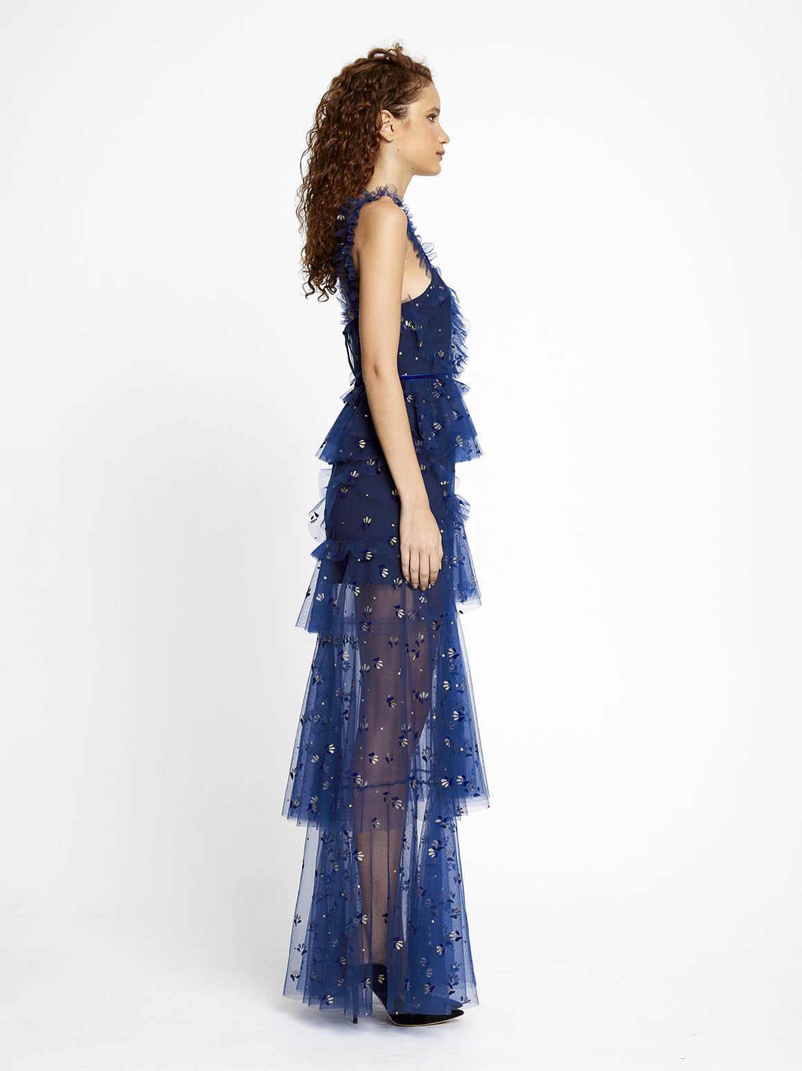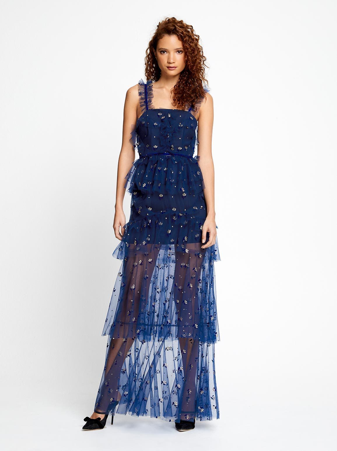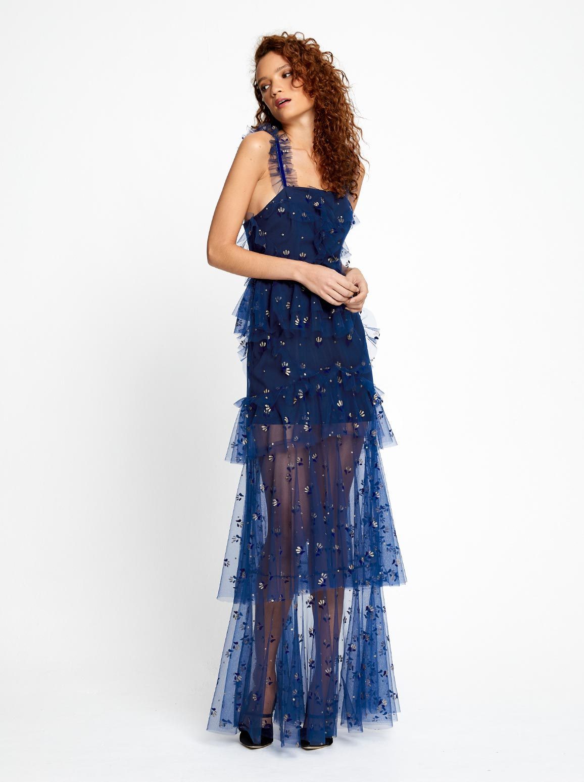The highly exclusive Cowboy Tears Gown has been designed for those looking for a whimsical and alluring dress to wear to their upcoming formal. The glitter and velvet applique add a touch of glamour and compliment the mesh ruffles and tiered skirt. Leave the statement to the gown and style with minimal jewellery.