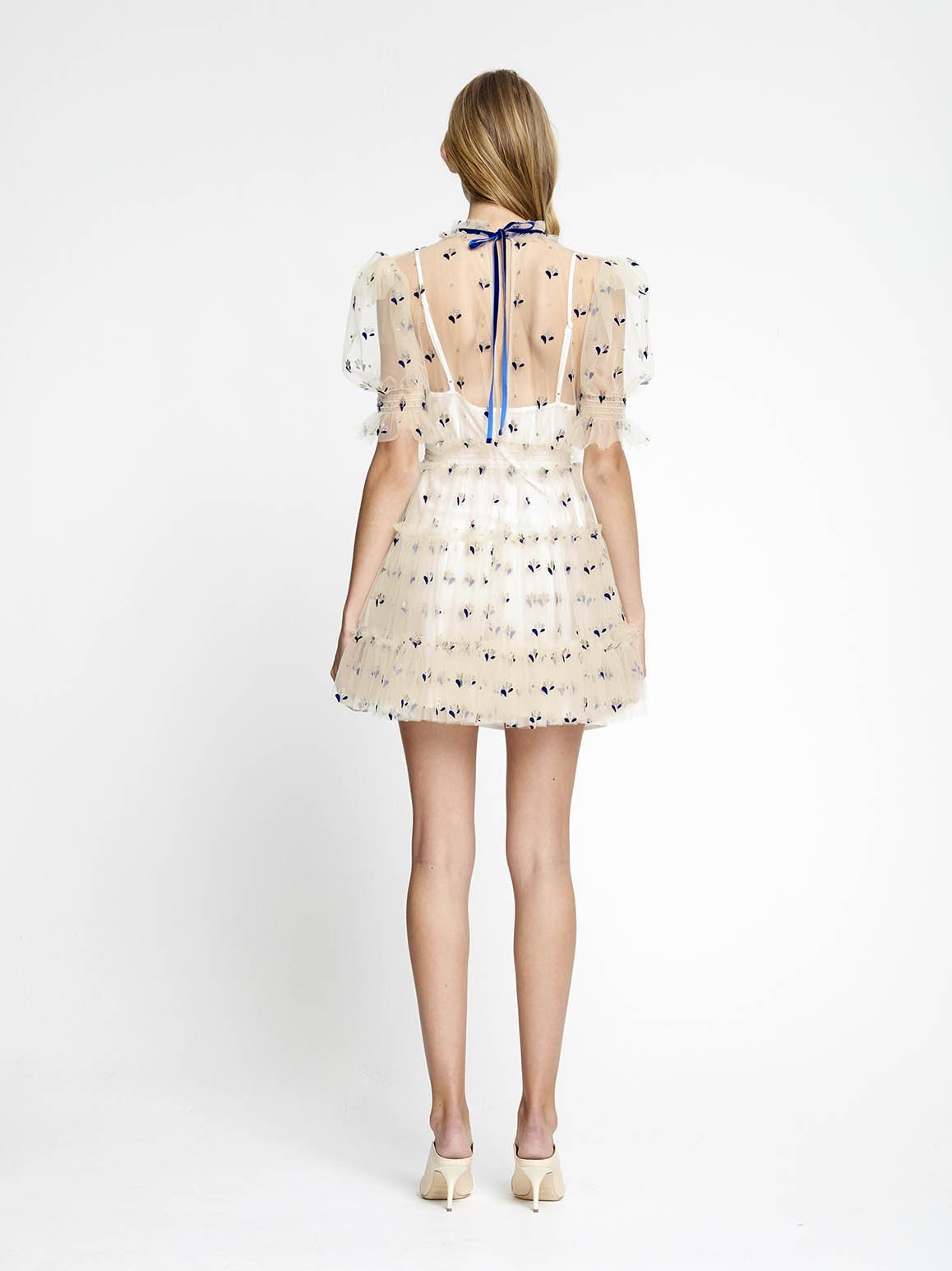 A key piece in the newest Autumn Winter 20 collection, the Cowboy Tears Mini Dress is both whimsical and charming, making it perfect for christenings, weddings and events alike. Glitter and velvet applique features across the mesh, whilst the tiered skirt is trimmed with sweet ruffles.