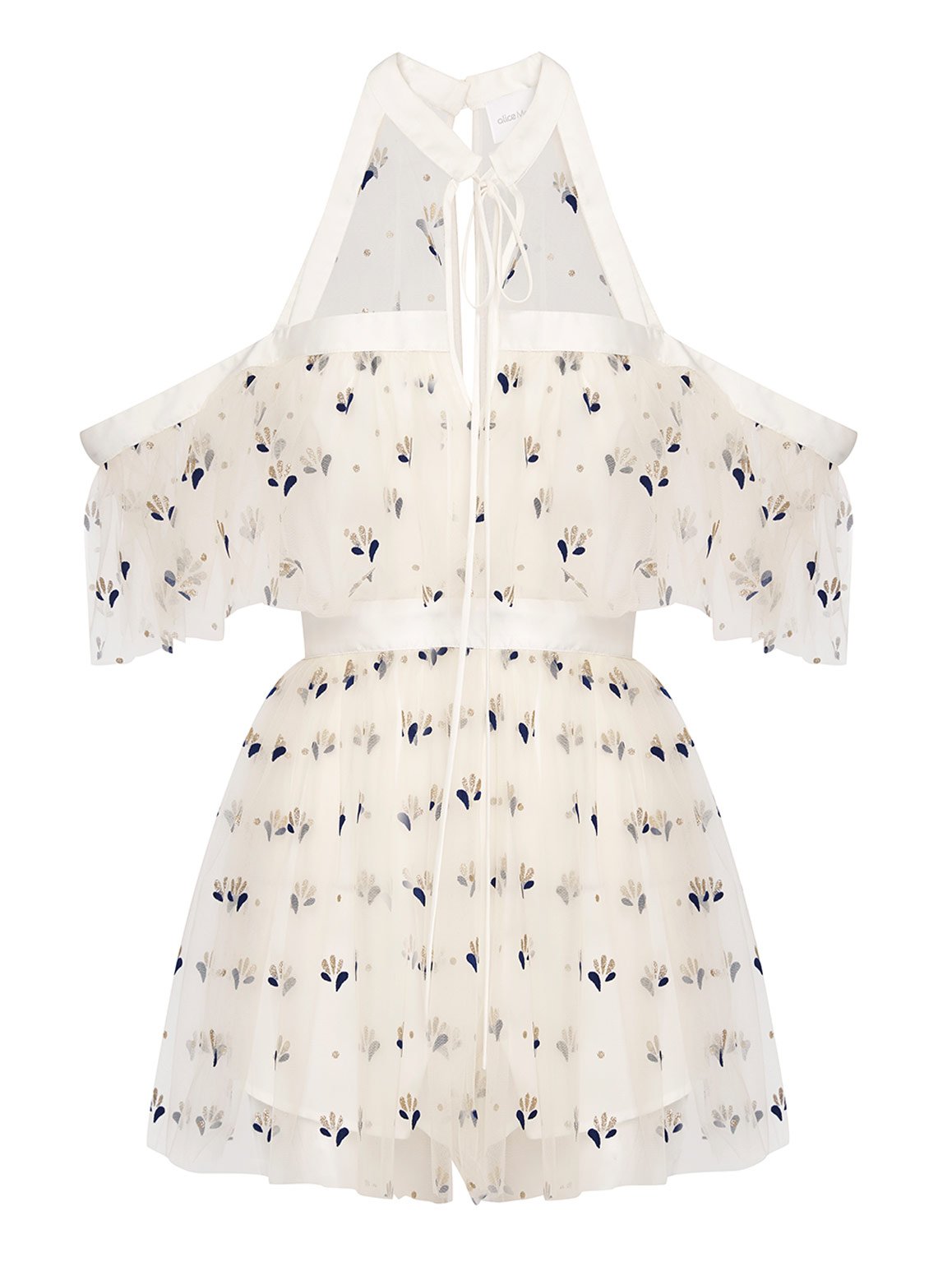 One of the most anticipated styles this season is the Cowboy Tears Playsuit. This flattering silhouette uses satin ribbon trims and a ruffled tier on the cold-shouldered neckline. Take your pick from 3 on-trend shades: indigo, creme & tea rose.