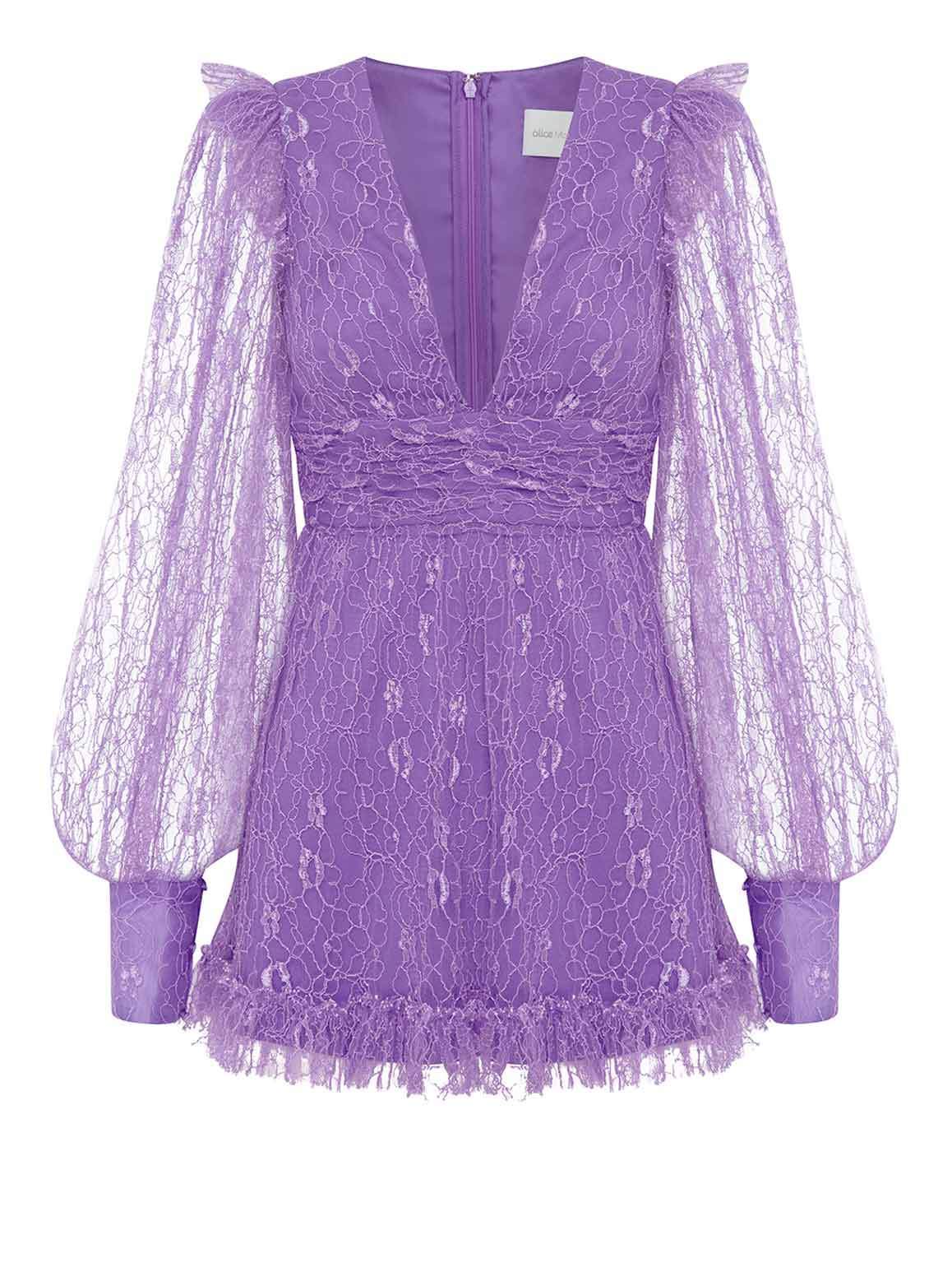 The Floyd Mini Dress is a dreamy fairytail design with its low but elegant V neck cut and puffed sleeves. Cut from a delicate corded lace, this plasyuit is lined throughout the bodice but leeves the sleeves sheer. Style it with a petite kitten heel & wear to your next dinner date.