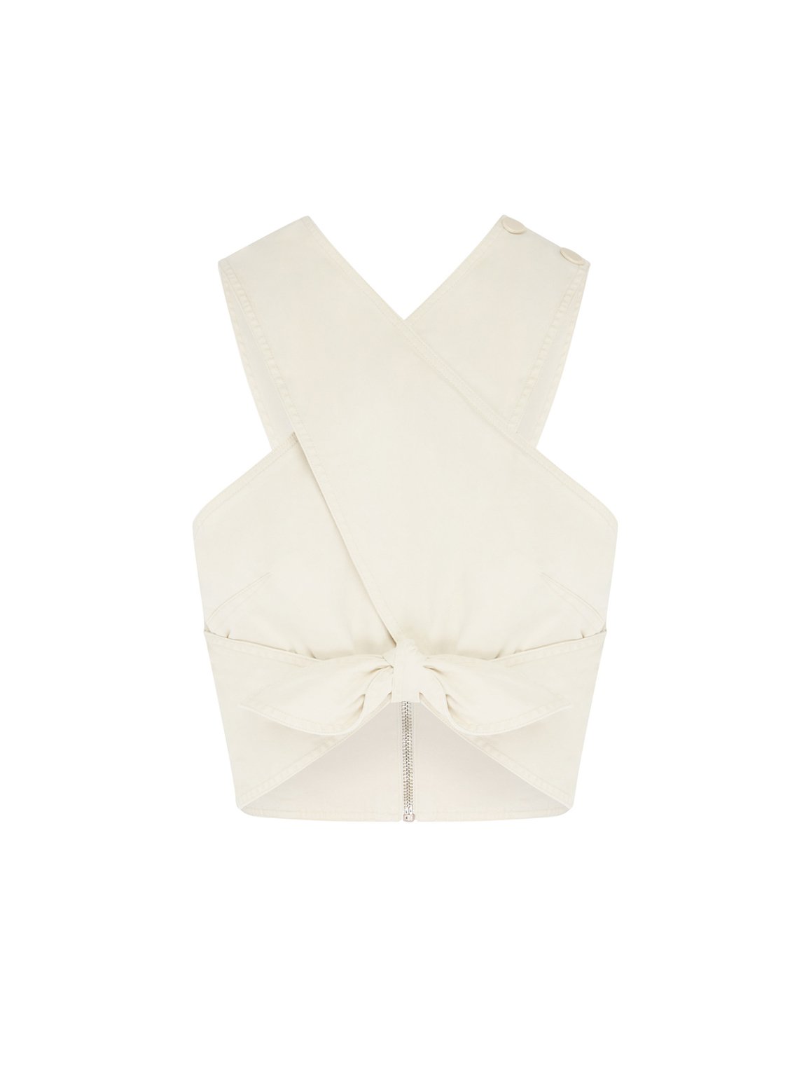 Crafted from a flexible stretch-cotton denim, The Hearts On Fire Top crosses over at the bust to reveal a knotted, cut-out front to draw attention to the smallest part of your frame. This crop top then turns to reveal a crossed back and exposed silver hardware. Wear yours with tonal pants - we love it with the On My Way Jeans.