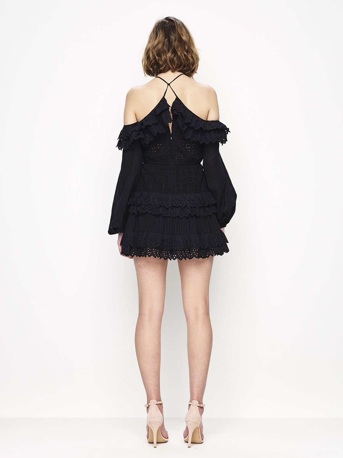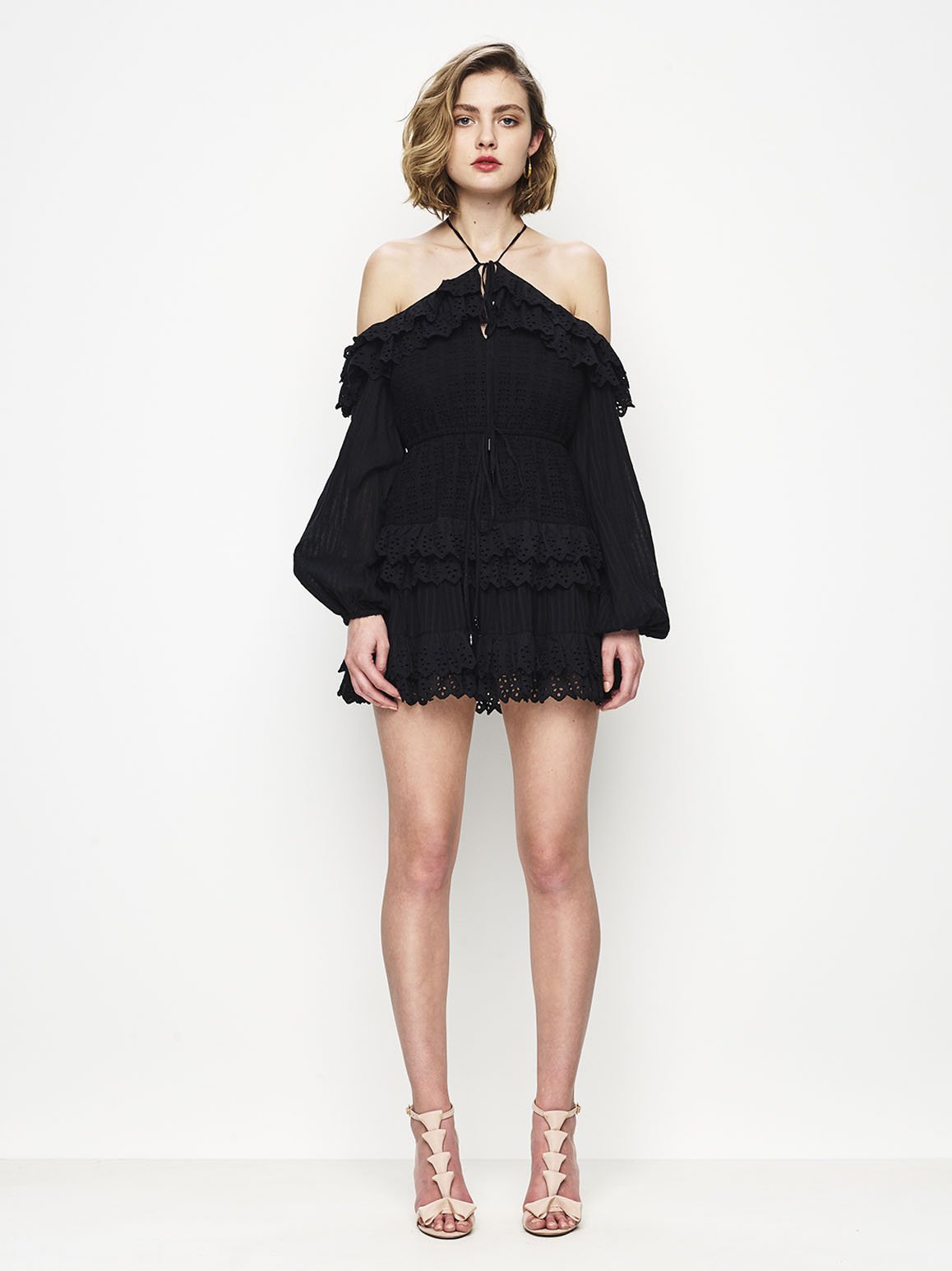 The Lover of Mine dress is the piece of the season, this style will take you from day to night while looking chic and effortless. With an off the shoulder shape, this style flaunts a frill over the bust and into balloon sleeves to gather at the wrist. Finishing mid thigh, this style is finished with a cotton embroidery.