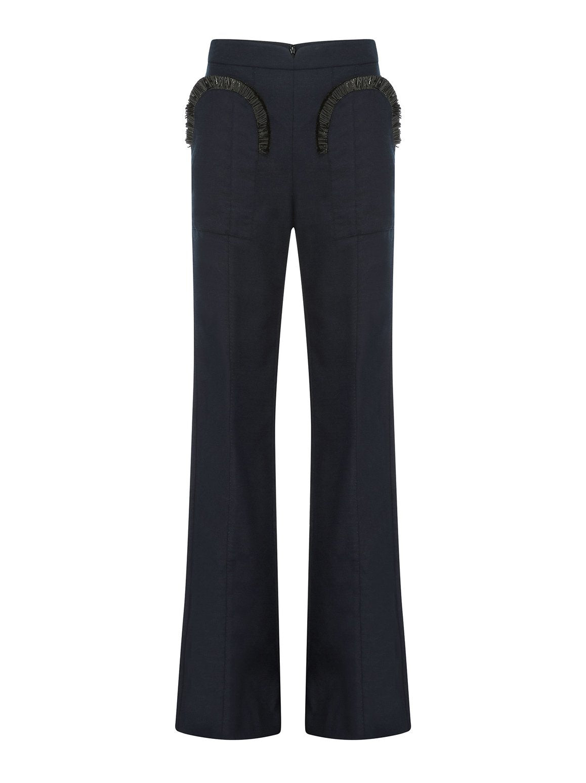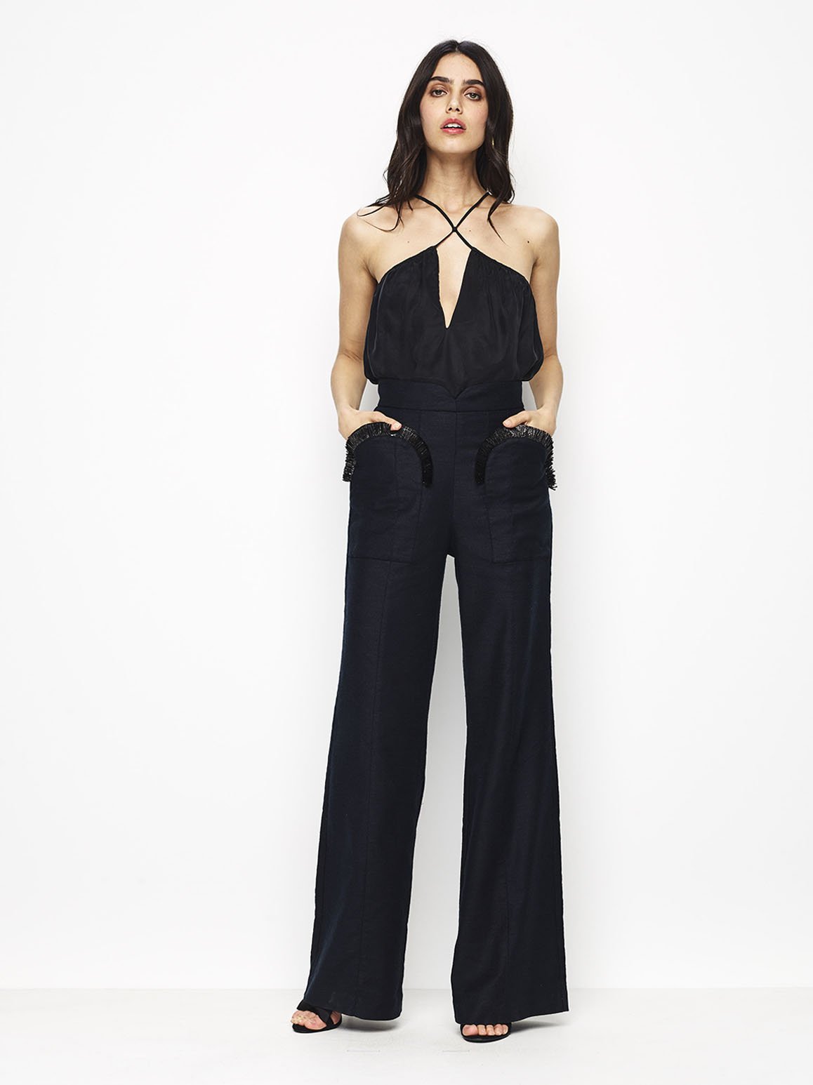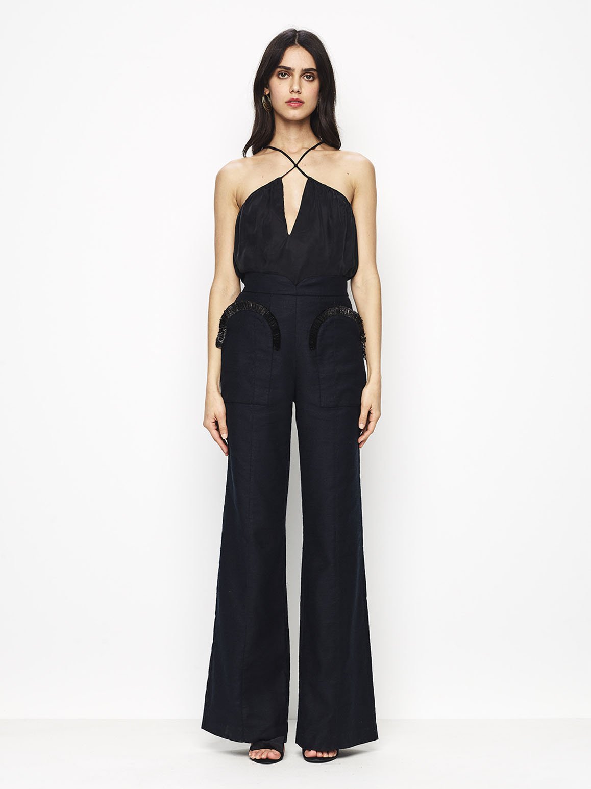 Cut from a textural linen and cotton blend, the New Religion Pants are tailored in a wide-leg shape that’s enhanced by deep pockets outlined with raffia fringing. Show off the nipped-in thick waist band by tucking in a blouse and pairing with heels to wear from your desk to dinner.